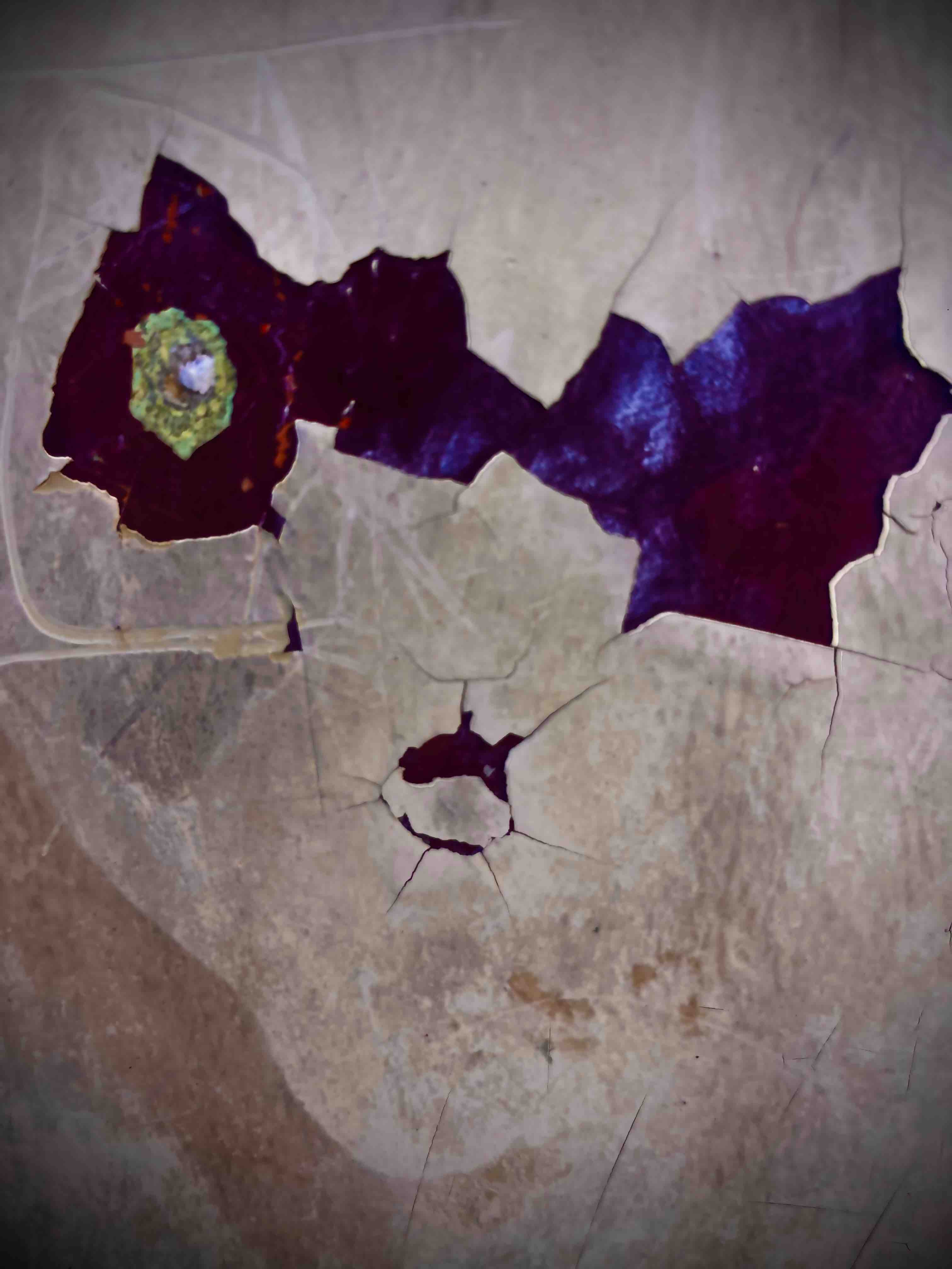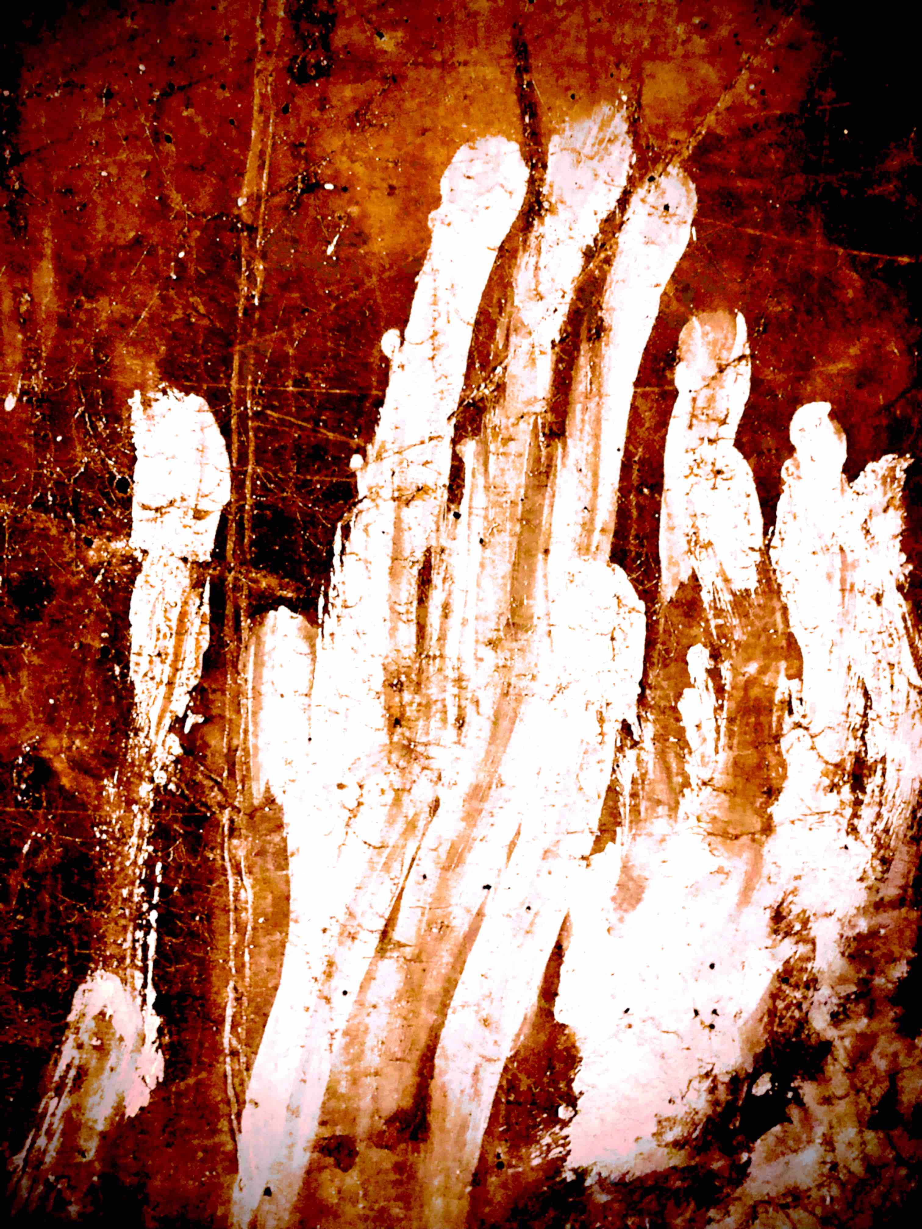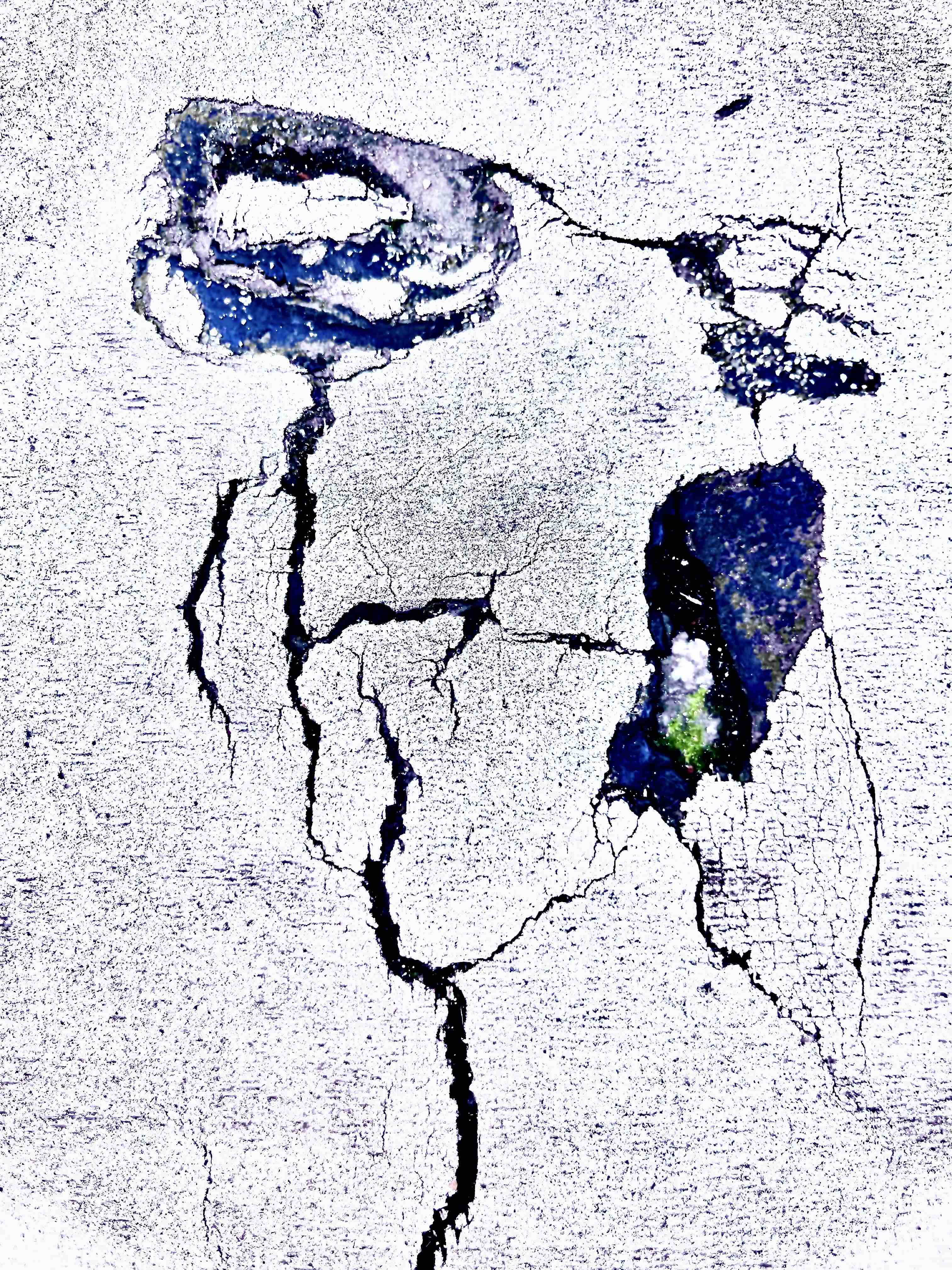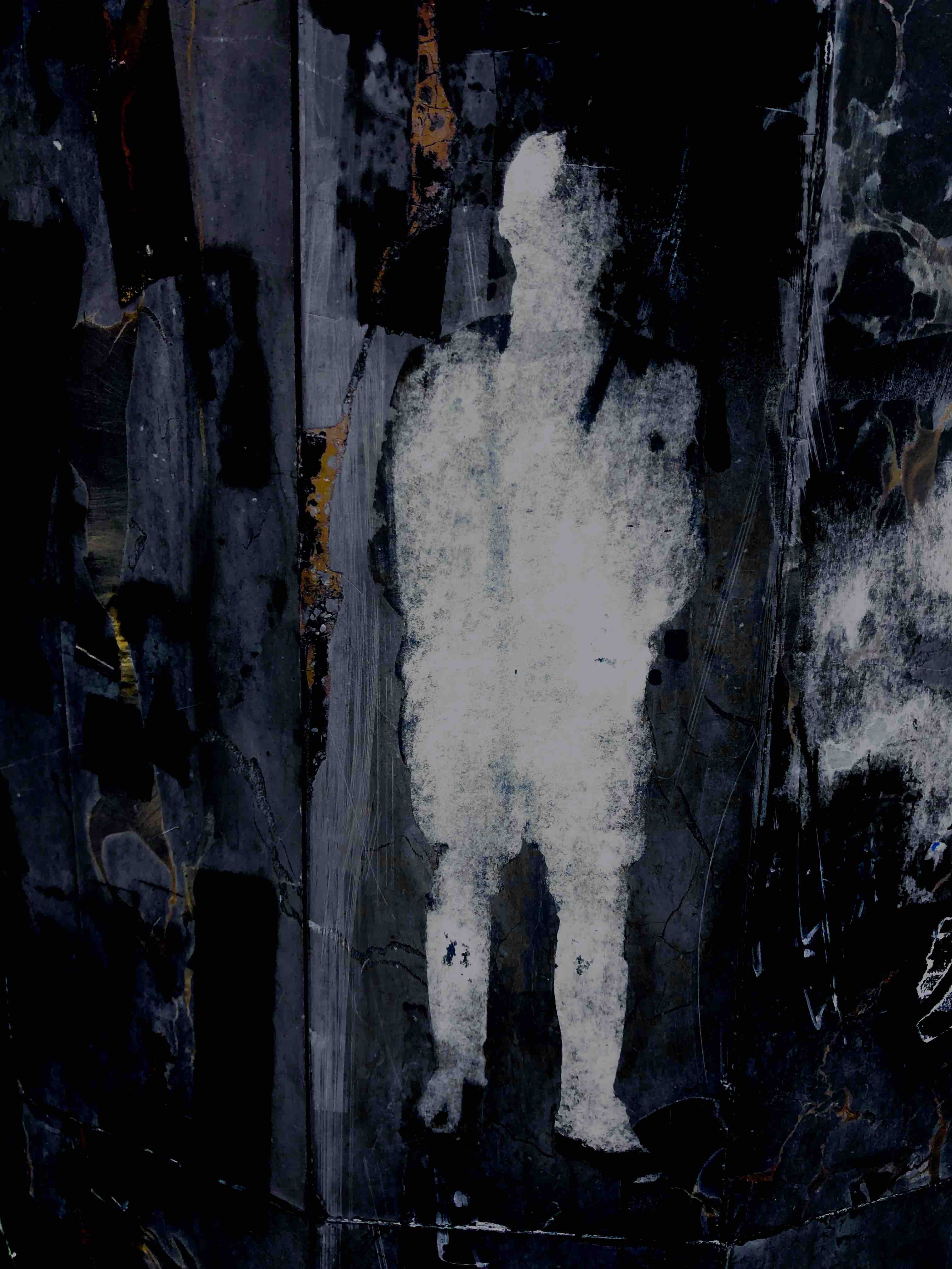 A travers ces traces, fragiles, éphémères, fugitives, glanées au fil de ses promenades - Smartphone à la main - il fait apparaître un monde endormi : fantômes égarés, esprits farceurs, âmes flottantes, corps brisés, disloqués, paysages énigmatiques abandonnés par le hasard, un univers qui semble craquer de partout et que l'on pourrait interpréter comme une sorte de métaphore de l' effondrement ou la forme incertaine d'une renaissance.